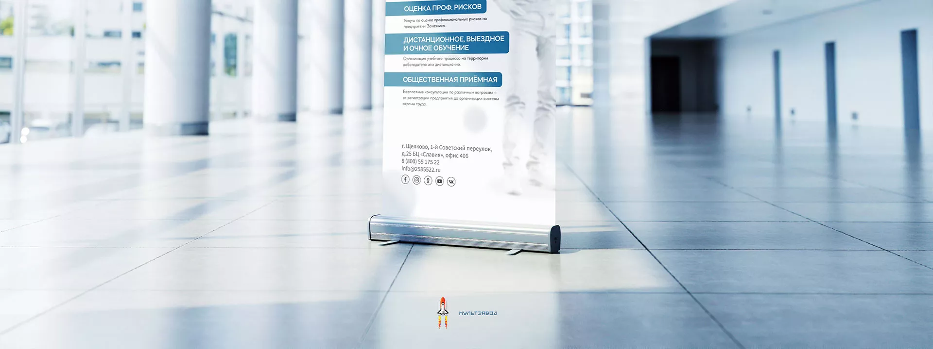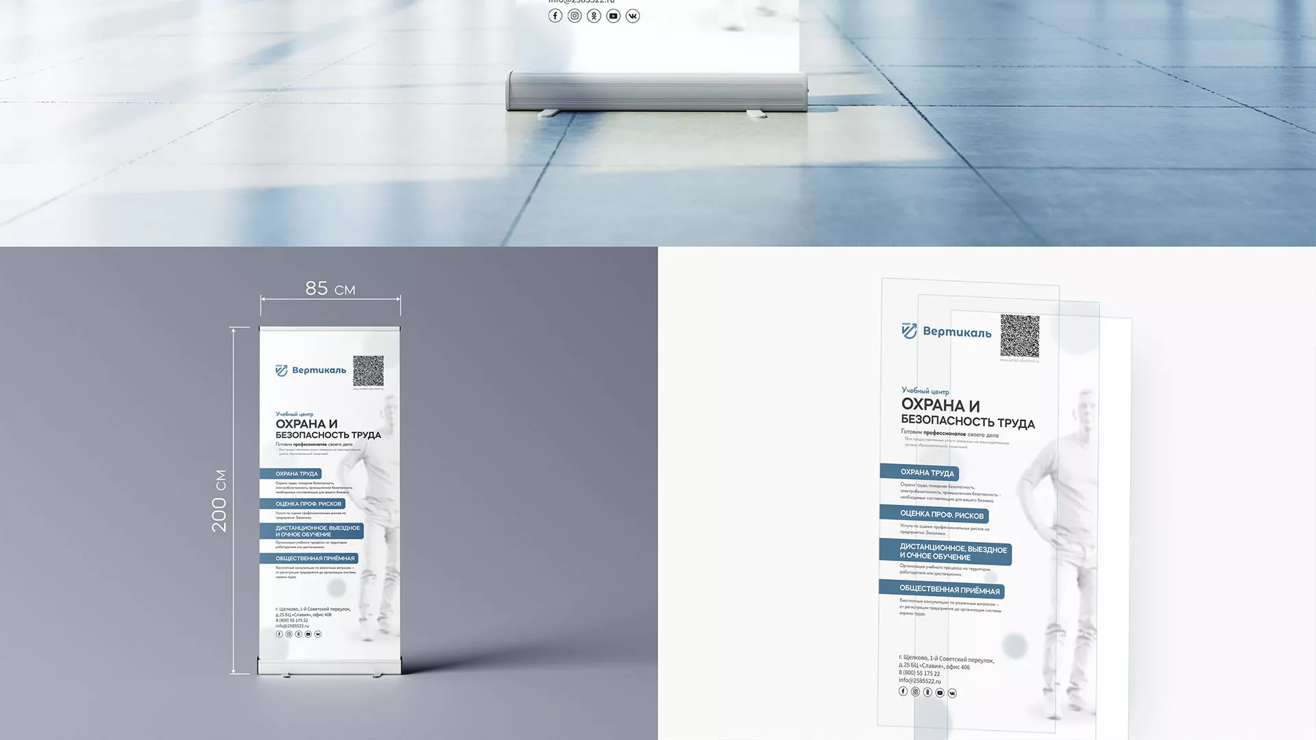 После разработки фирменного стиля и создания сайта, мы приступили к разработке дизайн-макета ролл-ап стенда в Юрьевце для учебного центра «Вертикаль».